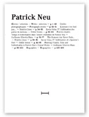 Fragiles visages inscrits à l’encre de chine sur les ailes d’un papillon, dessins à la gouache sur papiers carbonisés, armures en cristal, scènes et figures gravées à la pointe de la plume dans le noir de fumée d’un verre en cristal (…), les oeuvres de Patrick Neu offrent autant d’exercices « de funambulisme sculptural » mêlant « ambition et légèreté, apparente insignifiance et gravité, parfaite modestie et absolue maîtrise technique » (Didier Semin). Défis à notre imaginaire, à notre entendement, ses oeuvres ne sont pas réductibles à leur virtuosité et à leur séduction. Elles offrent avant tout une méditation sur le temps, une réflexion sur l’éphémère, sur l’inéluctable et imprévisible instabilité des choses et de l’instant. Cet ouvrage revient sur le parcours de Patrick Neu, sur une oeuvre où « la féérie visuelle cède la place à une lucidité à rebours de tout réenchantement. » (Frédéric Wecker, art 21, hiver 2008).